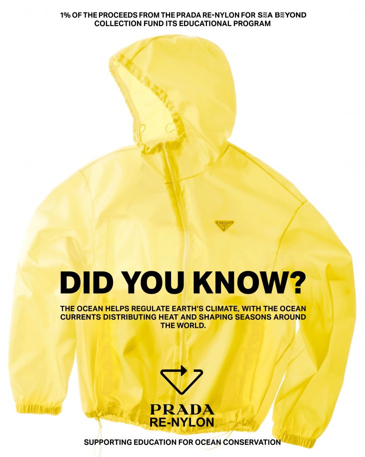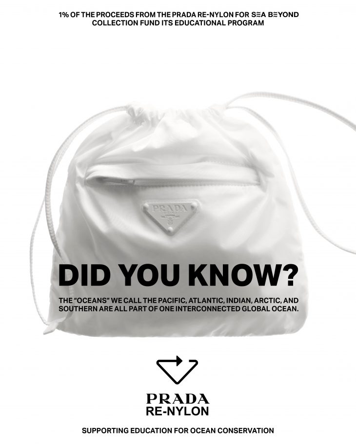 Desde 2023 el compromiso de Prada va más allá del objeto: el 1% de las ventas generadas por la colección se destinan a Sea Beyond, un proyecto del grupo en colaboración con la Comisión Oceanográfica Intergubernamental de la UNESCO. La iniciativa impulsa, a escala global, la educación oceánica centrada en su conservación y sostenibilidad.