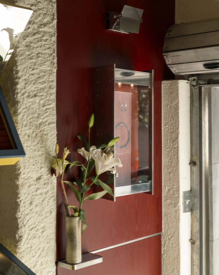Ahí, casi imperceptible, flanquedo por un lugar de maíz a su derecha y un Alchef del lado izquierdo, está Elio: un pasillo estrecho —aprovechado de manera insuperable— que sólo alguien con extremo sentido del espacio pudo haber dimensionado. Esto se explica porque la fundadora, Alejandra Piña, no sólo es diseñadora de joyería contemporánea, sino también arquitecta.